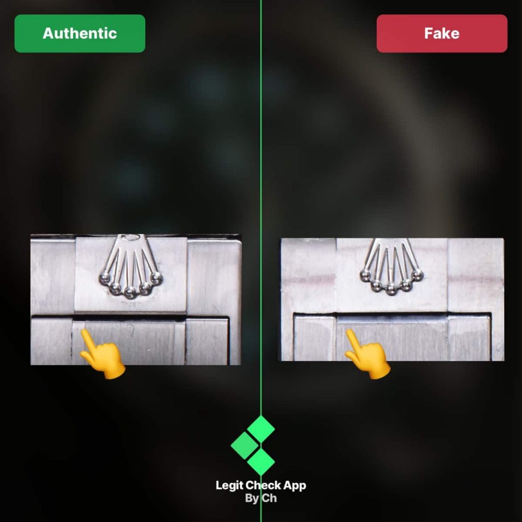 Looking at the Rolex Submariner fake vs real image above, you can notice how the genuine Rolex Submariner watch’s strap material is made out of oyster steel, and how on the replica Rolex Submariner, the strap looks like it is made out of poorer quality material.