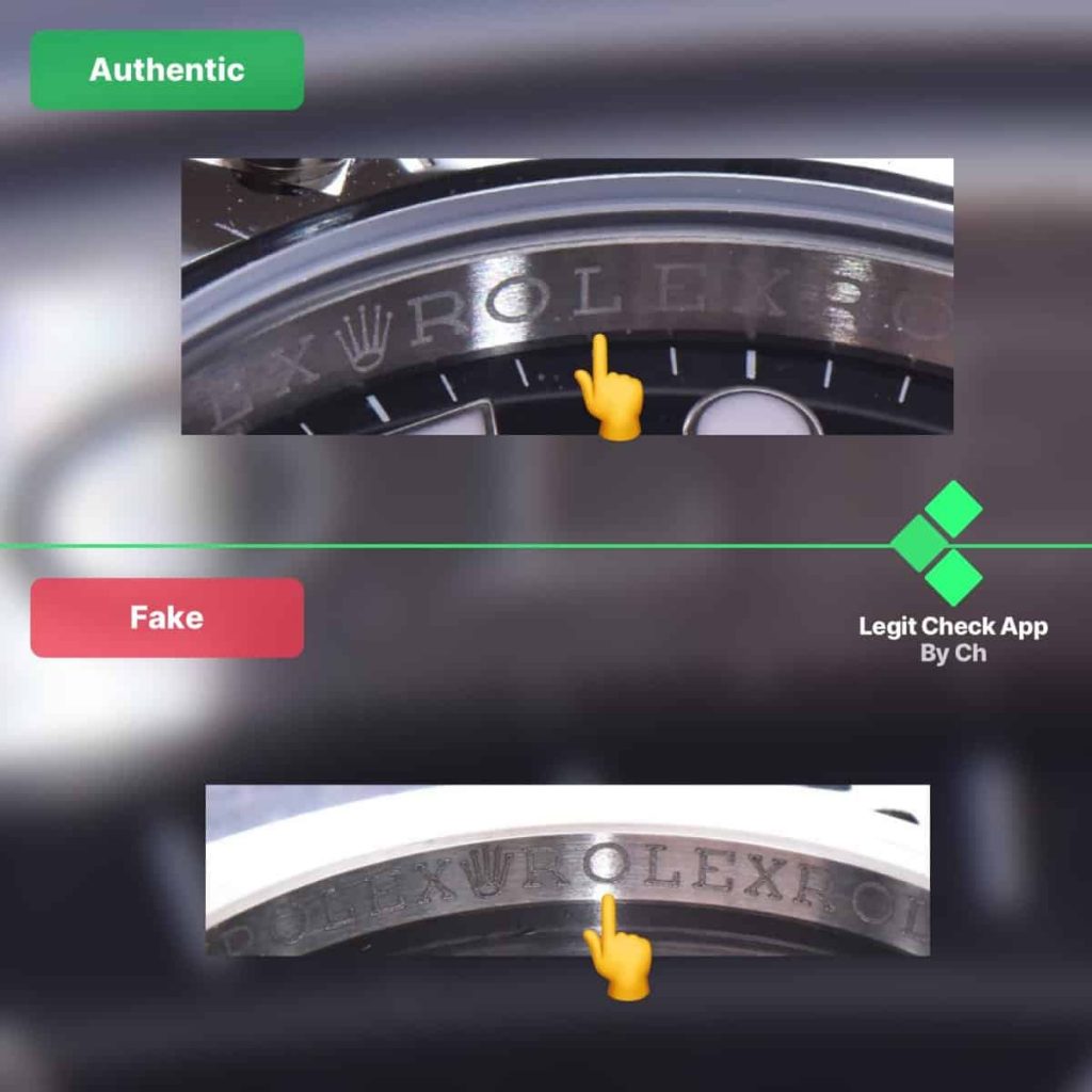 So, if you take a quick look at the real vs fake Rolex Submariner image again, you can see how the genuine Rolex watch has all of its letters at the same font-weight, unlike the fake watch.