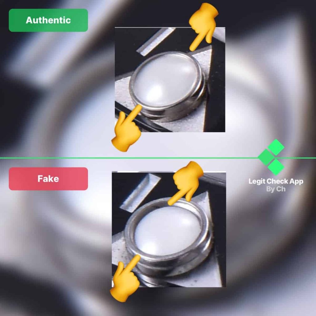 Looking at the legitimate Rolex Submariner watch, you can see how the pearl is placed correctly, as well as it has the same height as the “case” in which it stands. The material is also high quality and does not have any imperfections.